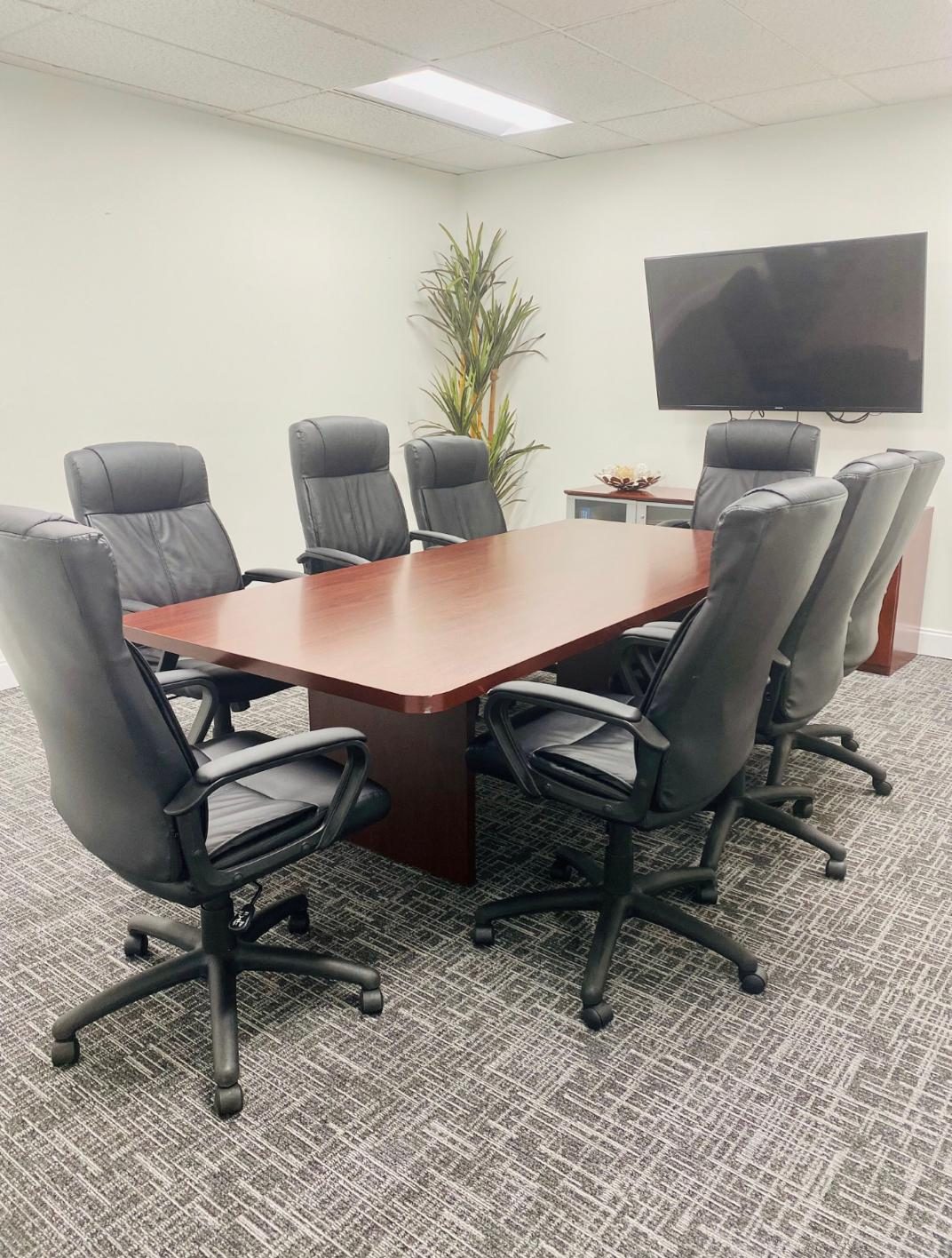This beautiful room is Ideal for interviews meetings, mediations, depositions, and presentations. It has an elegant set up that includes TV, DVD and speaker phone. The room fits 1 to 10 people comfortably.